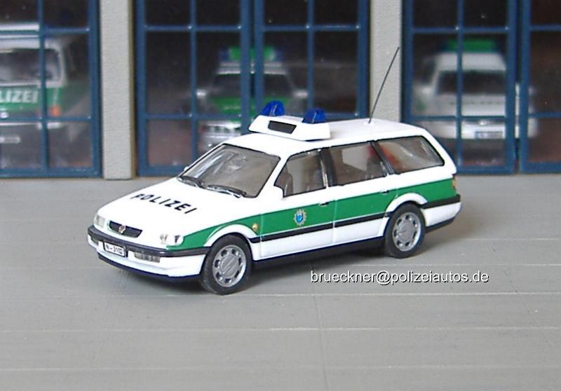 Pkw (seriennah), Bayern 1:87 VW Passat Variant Grundmodell: Herpa Maßstab:1:87 Einsatzgebiet des Vorbilds: Funkstreifenwagen (VW) Bayern5933 Aufrufe seit 04.03.2011 Bei einem Herpa-Polizei-Modell wurde die Beschriftung auf der Motorhaube und den Türen gemäß dem Vorbild geändert. Umbau: Brückner Zur Liste --- Serien- oder Sondermodelle --- Maßstab 1:43- Polizei Brandenburg 1:43- Bundespolizei (ehem. BGS ) 1:43- Polizei Hamburg 1:43- Polizei Niedersachsen 1:43- Polizei Nordrhein-Westfalen 1:43- Polizei Bayern 1:43- Polizei Berlin 1:43- Volkspolizei 1:43 Maßstab 1:87- Bundespolizei (1:87)- Feldjäger 1:87- Polizei Bremen 1:87- Polizei Hamburg 1:87- Bundesgrenzschutz (1:87)- Polizei Mecklenburg-Vorpommern 1:87...- Ordnungsamt (1:87)- Polizei Baden-Württemberg 1:87- Polizei Bayern 1:87- - Bereitschaftspolizei Bayern 1:87- - Kleintransporter (seriennah), Bayer...- - Pkw (seriennah), Bayern 1:87- Polizei Berlin 1:87- - Eigenbauten, Berlin 1:87- - Kleintransporter (seriennah), Berli...- - LKW (seriennah), Berlin 1:87- - PKW (seriennah), Berlin 1:87- Polizei Brandenburg 1:87- Polizei Hessen 1:87- Polizei Niedersachsen 1:87- Polizei Nordrhein-Westfalen 1:87- Erprobungsfahrzeuge 1:87- Polizei Rheinland-Pfalz 1:87- Polizei Sachsen 1:87- Polizei Schleswig Holstein 1:87- Polizei Thüringen 1:87- Polizei Sachsen-Anhalt 1:87- Volkspolizei 1:87- Modelle im Einsatz (Dioramen) 1:87- Zoll 1:87 Maßstab 1:160 Sonstige Maßstäbe