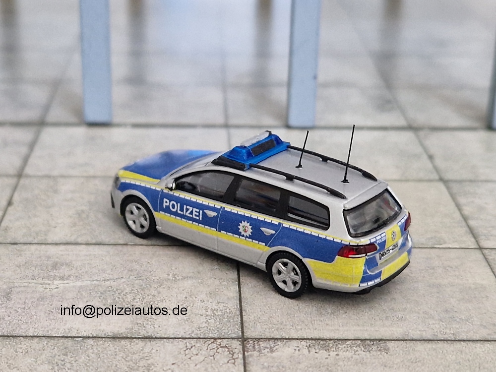 Das Modell von Wiking wurde zerlegt und mittels Airbrush in silber lackiert. Nach dem Trocknen konnten Decals von SRM87 aufgebracht werden. Abschließend wurden sämtliche Details wie Dachplatte, Blaulichtbalken und Antennen ergänzt.
