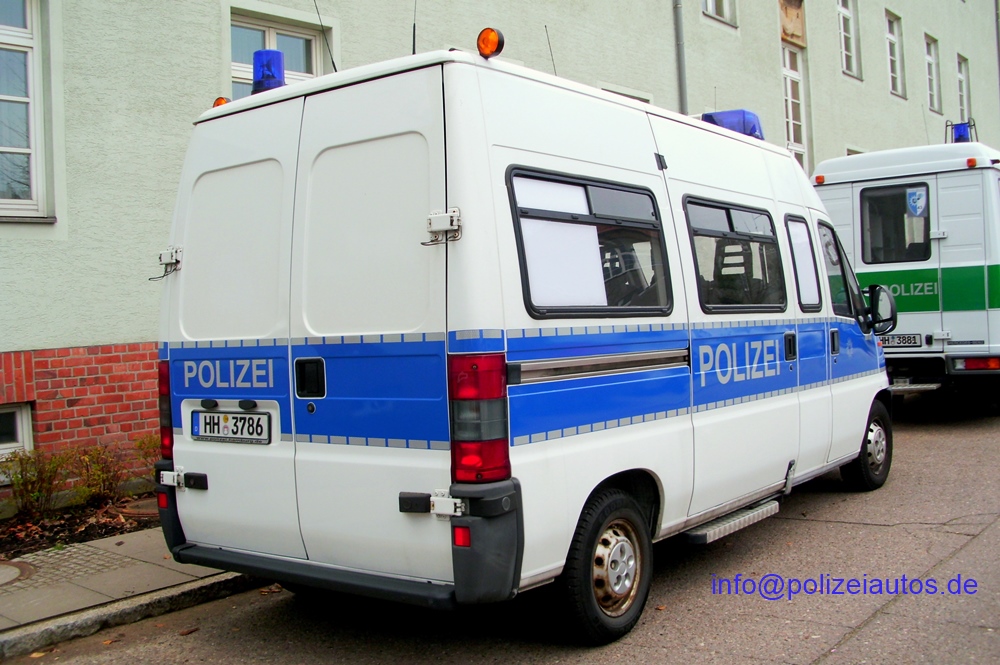 | Beschreibung: | Bundeseinheitlicher leichter Befehlskraftwagen (leBefkw) der Bereitschaftspolizei Hamburg mit blauer Bauchbinde (Zustand auf Fotos 2014), geschlossenen (verblechten) Hecktüren, sowie beidseitig Fenstern im schmalen Seitenteil hinter den vorderen Türen. Foto 3+4 und zeigen das Fahrzeug noch mit grüner Folierung. Fotos: I. Kröning |