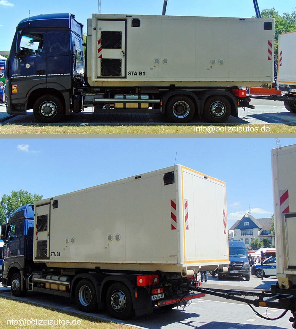 | Beschreibung: | Abrollbehälter "Durchsuchung" STA D1 und Abrollbehälter "Bearbeitung" STA B1 der Bundespolizei in St. Augustin.