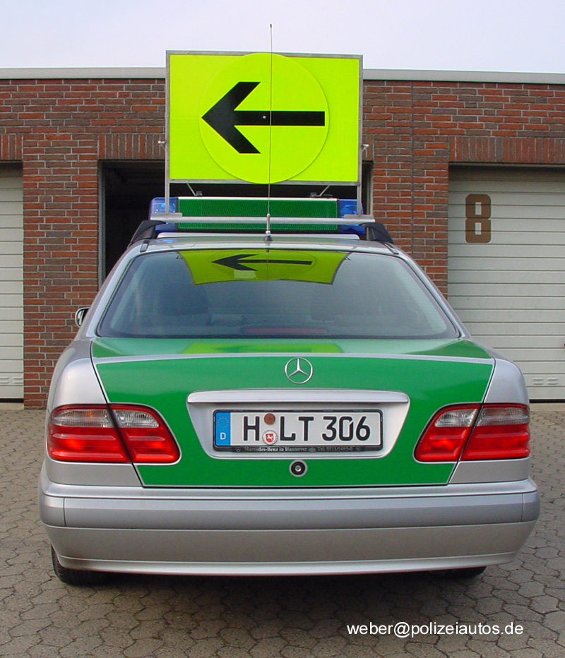 Beschreibung: | BAB-Funkstreifenwagen mit aufgestellter Info-/Warntafel (STAU, bzw. drehbarer Richtungsweiser). Die 50 x 70 cm große Warntafel wurde im Jahre 2001 polizeiintern entworfen und hergestellt. Bis zur Einführung geeigneter Infogeber wurden die zwei vorhandenen Exemplare eingesetzt. Die Warntafel wurde im Kofferraum mitgeführt und bei Bedarf in eine auf dem Fahrzeugdach befestigte Schiene eingeschoben und arretiert. |
