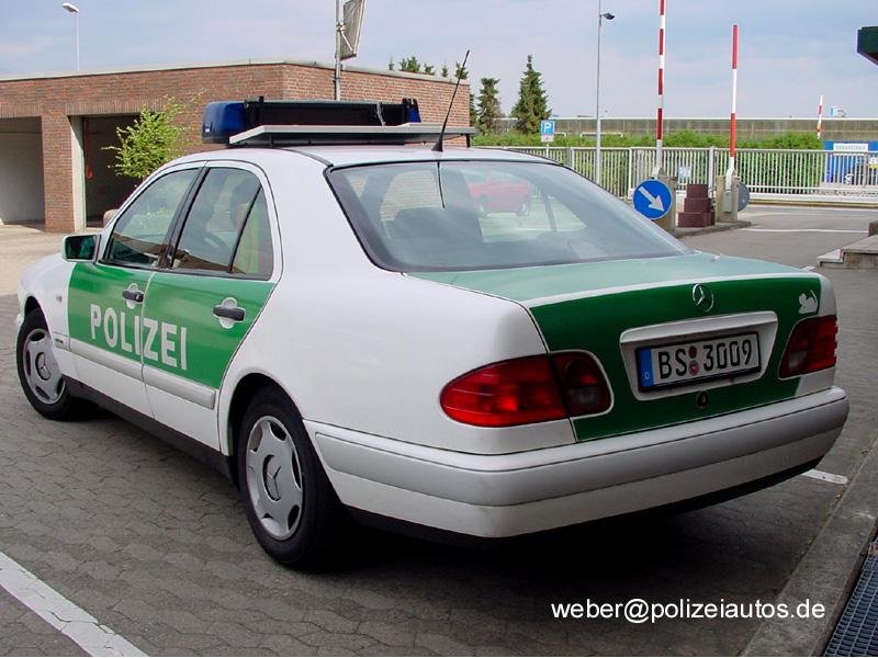 Funkstreifenwagen der Autobahnpolizei Niedersachsen mit "microtec"-Infogeber (Klapptafel) auf dem Dach.