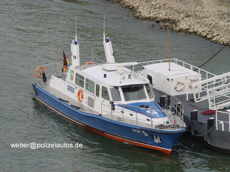 | Beschreibung: | Rheinstreifenboot WSP 5 (Typ Boot 2000) der Wasserschutzpolizei Nordrhein-Westfalen auf dem Rhein bei Bonn. Links im Bild der Bug der WSP 1 (Baujahr 1974 und 2011 ausgemustert) zu sehen. |