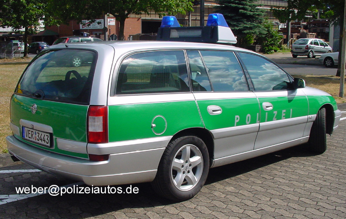 Funkstreifenwagen ohne Polizeibeschriftung auf der Motorhaube und mit kleinem Polizeischriftzug auf den Seitentüren.
