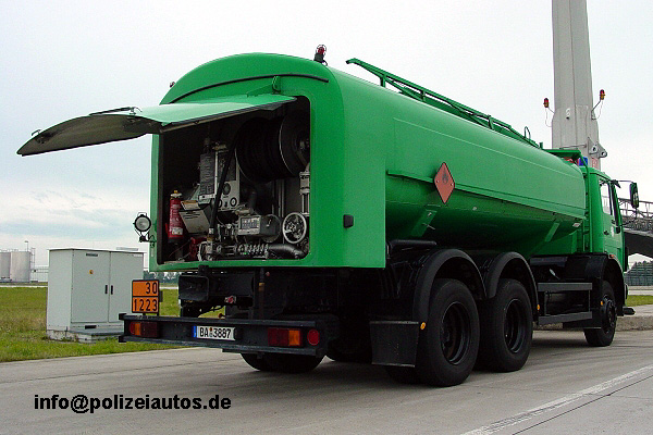 Beschreibung: | Tankfahrzeug der Polizei-Hubschrauberstaffel am Flughafen München. Mit diesem Tankfahrzeug können die Hubschrauber fernab der Basis Flughafen München auch bei Einsätzen und Übungen betankt werden. Tankinhalt 11.985 ltr. Aufbauhersteller Fa. Esterer. Erstzulassung 25.3.1986 Leergewicht: 10015kg zul. Gesamtgewicht:. 22.000 kg. Fotos: Helmut Kunert (www.blaulichtwelten.de) |