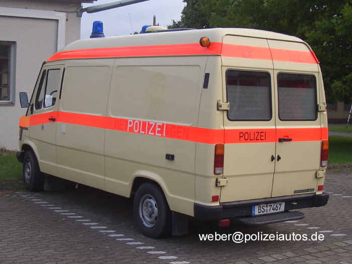 | Beschreibung: | Krankentransportwagen. Nach Überarbeitung nun mit Aufschrift POLIZEI. Die "Roten Kreuze" an den Heckscheiben wurden entfernt. |