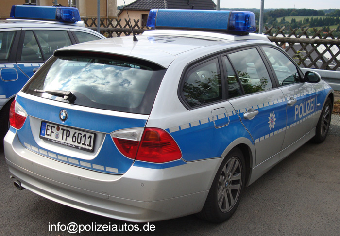 | Beschreibung: | BMW 320d mit Leichtmetallfelgen als Funkstreifenwagen der Polizei Thüringen (2008). 1. Foto: Andy 2. Ansicht: Ingo Hoffmann |