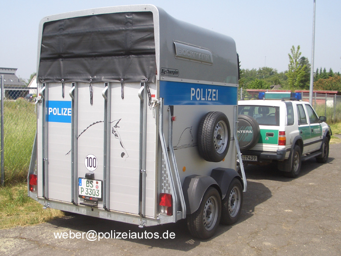 Pferdetransportanhänger (Big Champion) der Polizei Niedersachsen in neuer Farbgebung.