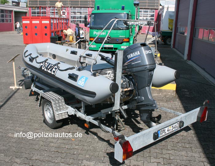 Schlauchboot der Bereitschaftspolizei auf einem Trailer