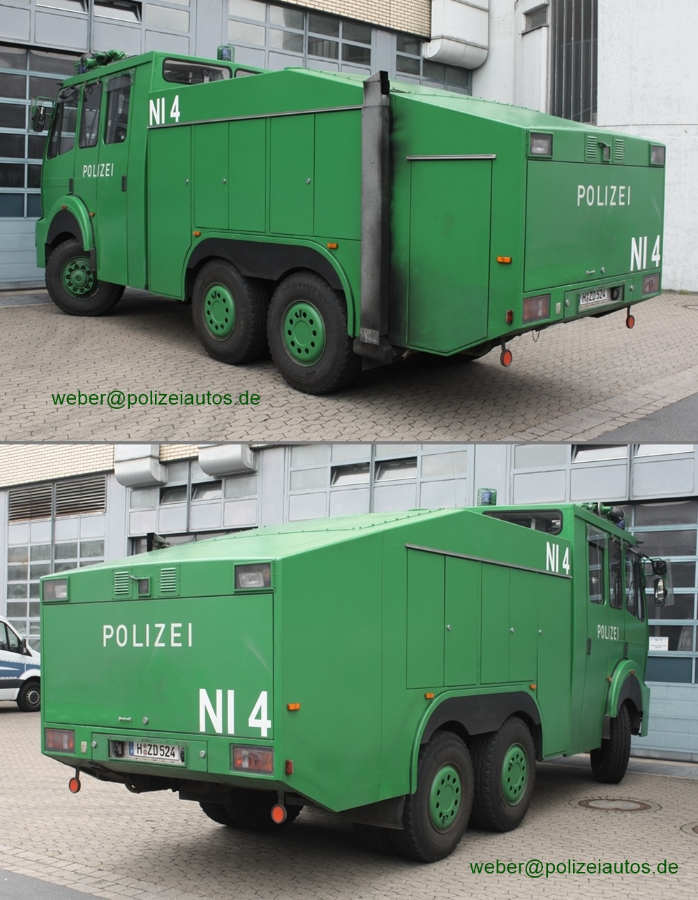 Beschreibung: | Wasserwerfer 9000 der niedersächsischen Bereitschaftspolizei, hier mit neuer Kennung NI 4 Foto 1: Olaf Schulz |