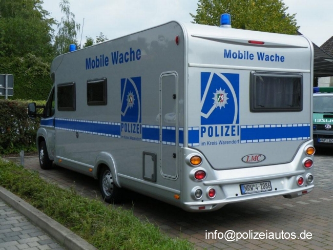 | Beschreibung: | Mobile Wache der Polizei im Kreis Warendorf. Aufgebaut wurde das Fahrzeug durch die Fa. LMC auf einem Fiat Ducato-Fahrgestell. Die vormals grüne Bauchbinde wurde nunmehr durch eine blaue Version ersetzt. |