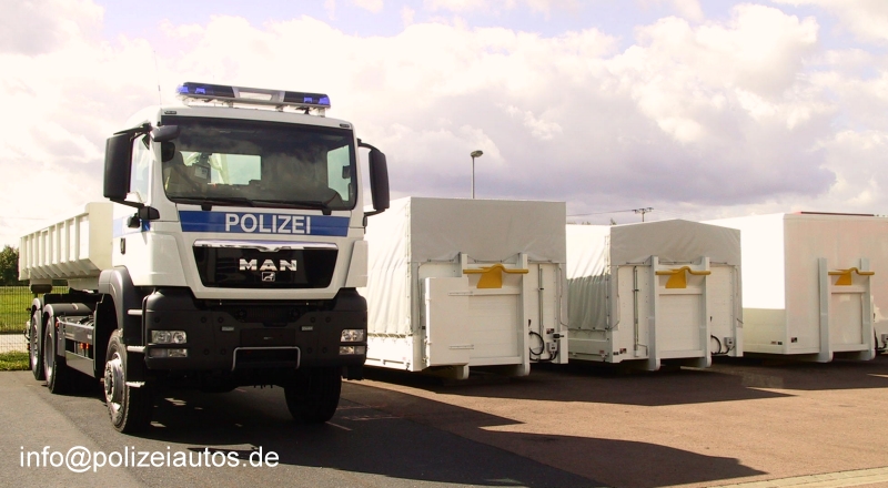 | Beschreibung: | Wechselladerfahrzeug (WLF), aufgebaut auf einem Geländefahrgestell vom Typ MAN TGS 28.440 6x4-4. Bei diesem Fahrzeug handelt es sich um den ersten Wechsellader bzw. Wechselladerzug des im Jahr 2010 bei der Bundespolizei neu eingeführten LKW-Systems. Mit den Wechselladern sollen nach und nach alle schweren LKW bei der Bundespolizei ersetzt werden. Zudem möchte man mit den Fahrzeugen samt Anhängern und Austauschbaren Ladungsträgern (ATL) erreichen, dass zukünftig weniger (Groß-) Fahrzeuge vorgehalten werden müssen sowie mit den unterschiedlichen ATL Material flexibler transportiert werden kann und sich Standzeiten verringern. Als Austauschbare Ladungsträger wurden zunächst Stahlmulde, Koffer, Pritsche-Plane-Spriegel sowie Pritsche-Plane-Spriegel mit Vertikallift beschafft. |