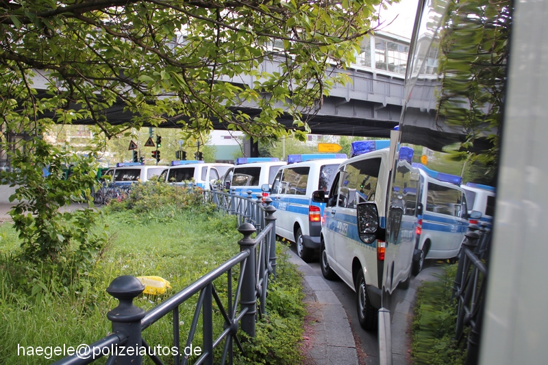 Einheiten der Bundespolizei und verschiedener Länderpolizeien sichern den Bereich rund um das Kottbusser Tor in Berlin-Kreuzberg.