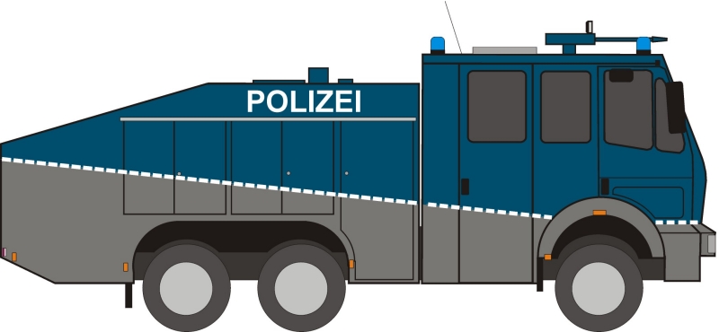 Wasserwerfer mit einem Tankvolumen von 9000 Litern. Bitte beachten Sie die Hinweise in der