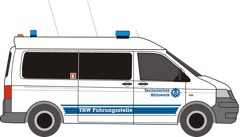 Führungskraftwagen der Fachgruppe Kommunikation für den Aufbau einer THW-Führungsstelle. Bitte beachten Sie die Hinweise in der