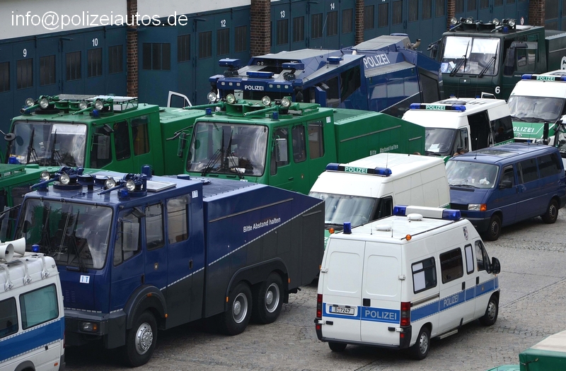 Wasserwerfer verschiedener Landespolizeien im Bereitstellungsraum. Fotos: Oliver Nordt