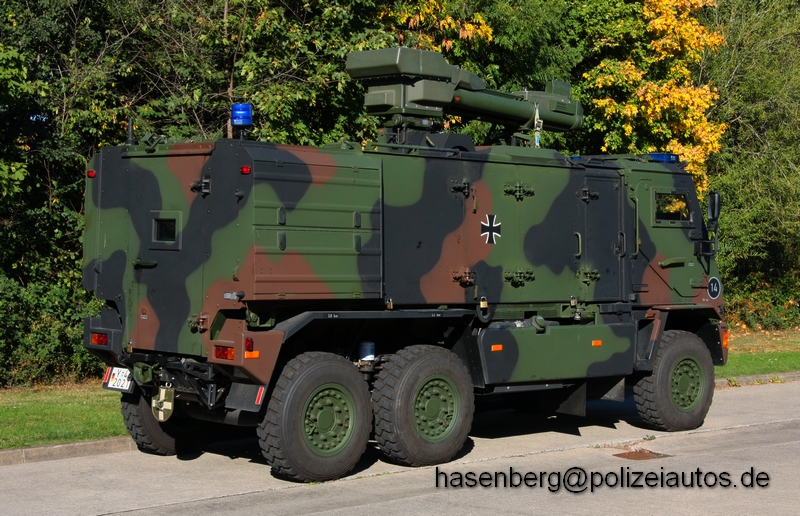 Dieser Fahrzeugtyp wird bei der Bundeswehr als YAK bezeichnet. Es wurden für CRC Einsatz im Ausland mehrere Mehrzeckaufbauten Wasserwerfer beschafft. Im Aufbau befindet sich ein Wassertank mit 1000l Wasser und der Technik für die Abgabe des Wassers. Anders wie bei den WaWe der BL wird das Wasser mittels eines Impulslöschverfahren "IFEX" abgegeben. Das Wasser kann dabei als "Wasserstoß" bis zu 60 m geschossen werden. |