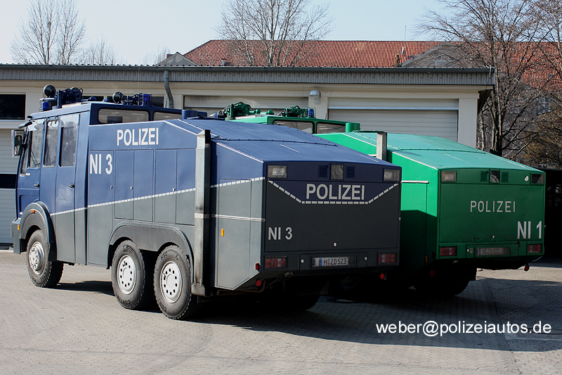 Beschreibung: | Baugleich und im Äußeren doch so unterschiedlich: Wasserwerfer der niedersächsischen Bereitschaftspolizei |