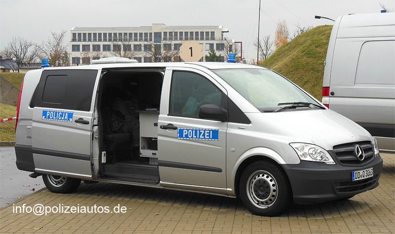 | Beschreibung: | Befehlskraftwagen des SEK Sachsen, finanziert über das EU-Projekt 'Ziel 3' zur Zusammenarbeit mit der polnischen Polizei (siehe Magnetschilder in zwei Sprachen). Die Aufnahmen entstanden bei der offiziellen Fahrzeugübergabe. - Fotos und Infos: Thorsten Schiffer |