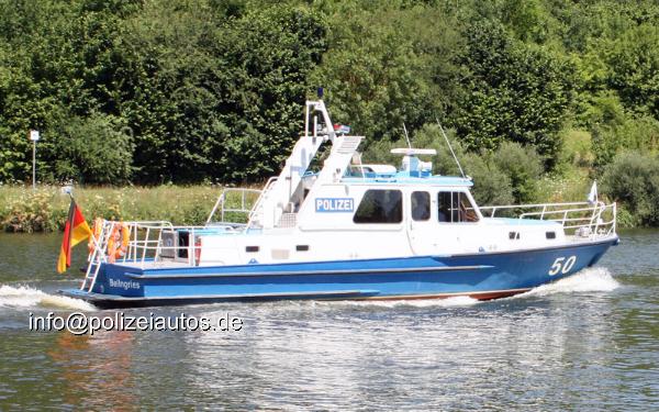 | Beschreibung: | Boot 50 der Wasserschutzpolizei Beilngries. Technische Daten Baujahr: 1992 Länge: 13,80 Meter Breite: 3,90 Meter Tiefgang: 0,90 Meter. Leistung: 520 PS mit 2x6 Zyl. Dieselmotor Einsatzgebiet: Main-Donau-Kanal von Hilpoltstein bis zur Donau (72 Streckenkilometer mit 6 Schleusen). Fotos: Helmut Kunert (www.blaulichtwelten.de) |