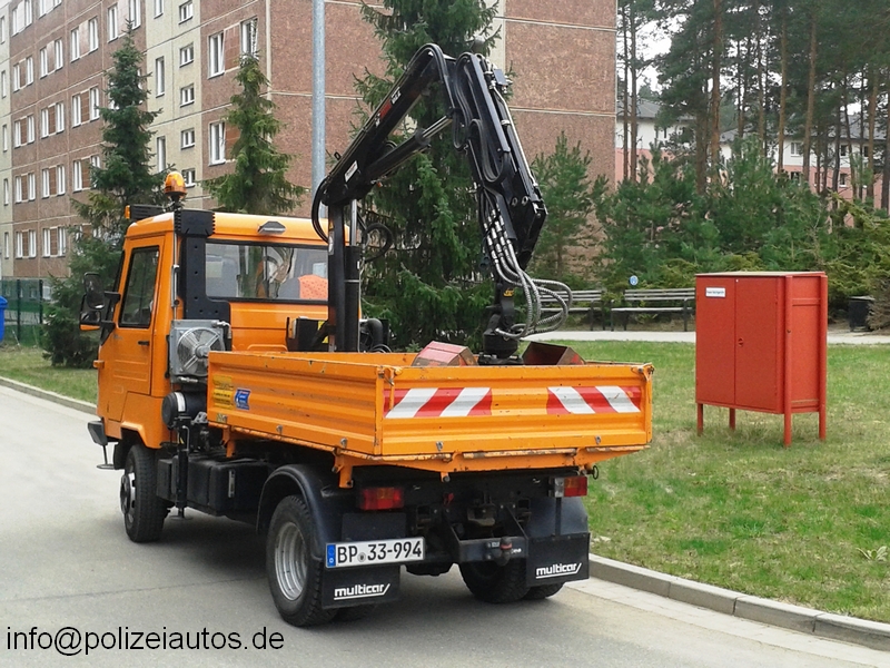 | Beschreibung: | Multicar M26 als leichter LKW mit Kippaufbau, Ladekran mit Zweischalengreifer und Anbauplatte für einen Schneepflug. Eingesetzt wird das Fahrzeug im Bereich der Liegenschaftsverwaltung. |