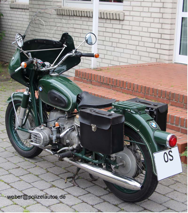 | Beschreibung: | Ehemaliges Streifenmotorrad der Verkehrspolizeistaffel Regierungsbezirk Osnabrück, in Osnabrück (heutzutage PK BAB). Das Motorrad wurde am 07.07.1964 im BMW-Werk in München gefertigt und im September des gleichen Jahres an die Polizei Niedersachsen ausgeliefert. Im Jahre 1976 wurde es meistbietend versteigert. Nach der Restaurierung (2010/2011) ist es seit August 2011 wieder zugelassen. Der Motor hat 495ccm und 25 PS. |