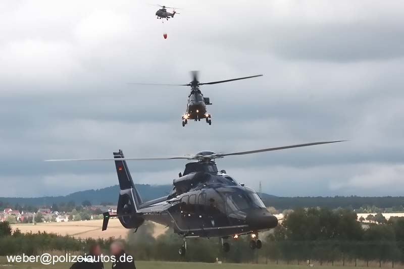 | Beschreibung: | Im Rahmen des TdoT der Bundespolizei "Fuldatal" am 08.09.2013, führten die Helikopter mehrere Übungslagen durch, hier sind ein Eurocopter EC 155-B und zwei Aerospatiale AS 332 Super Puma im Landeanflug zu sehen. Unter der letzten Super Puma hängt ein sogenannter Bambi Bucket, ein faltbarer Behälter, zur Löschwasseraufnahme. |