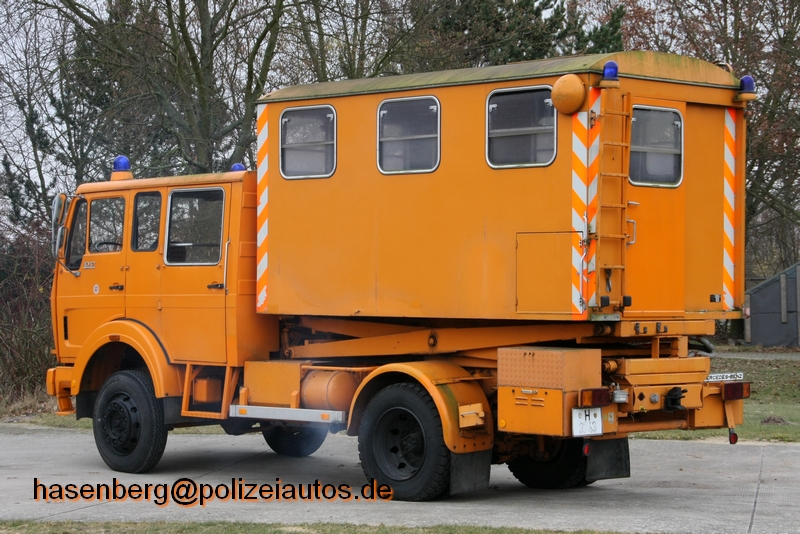 Bei diesem Fahrzeug handelt es sich um einen Prototyp der nach den schweren Demonstrationen in Grohnde und Gorleben von der niedersächsischen Landespolizei beschafft wurde. Die Beobachtungskabine kann stufenlos über eine Hydraulik auf eine Höhe von 4,2m angehoben werden. Dieses Fahrzeug sollte bei Kundgebungen und Großveranstaltungen einen Überblick über große Menschenansammlungen ermöglichen. Da sich das Konzept nicht durchsetzten konnte blieb es bei diesem Einzelstück, welches bei der Fa. Schörling in Hannover gebaut wurde. Mittlerweile wird das Fahrzeug bei der Hubschrauberstaffel als mobiler Tower genutzt. |