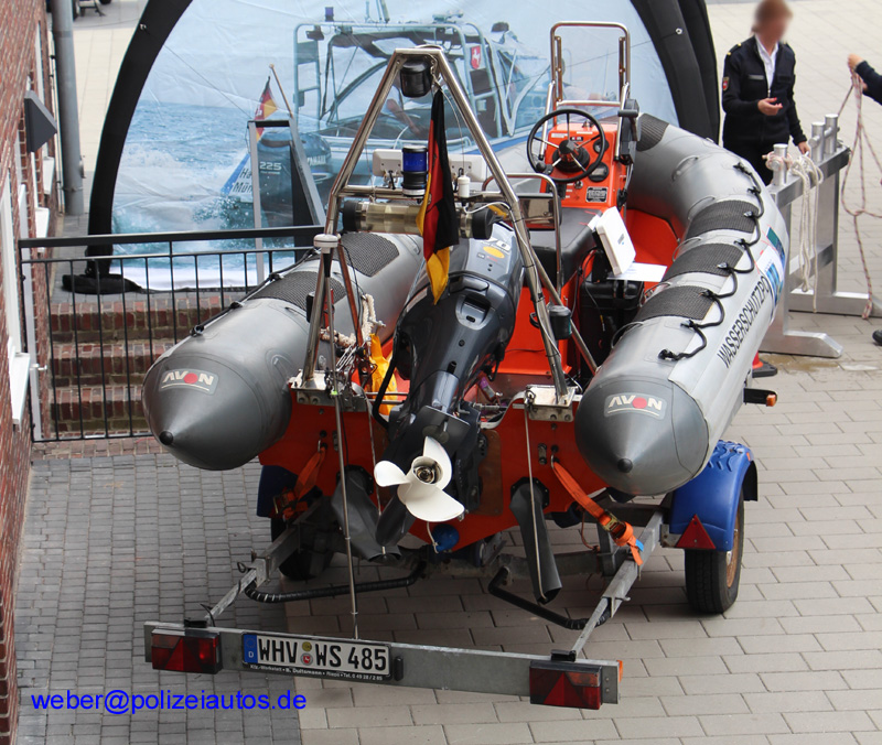 | Beschreibung: | Trailerbares Polizeistreifenboot 25 der Wasserschutzpolizei Niedersachsen. Hersteller: Köser Marine GmbH Kiel Bauart: Festrumpfschlauchboot |