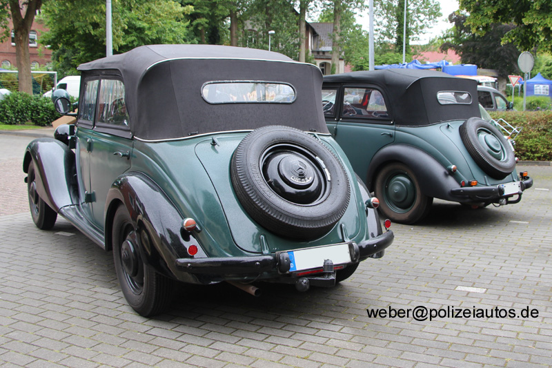 Beschreibung: | Ehemalige Führungsfahrzeuge der Bereitschaftspolizei und des Bundesgrenzschutz. Diese offenen Polizei-Tourenwagen (OTP) wurden 1951/52 beschafft und gehörten zur Erstausstattung der Bereitschaftspolizeien und des BGS. Die hier abgebildeten Exemplare wurden 1951 beschafft. Fahrzeuge gleichen Typs sind HIER im Rahmen einer Hundertschaftsübung um 1960 zu sehen. |