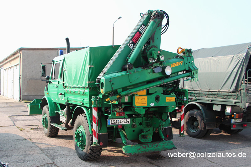 | Beschreibung: | Zugmaschine der Bereitschaftspolizei des Landes Sachsen-Anhalt mit Ladeschaufel und HIAB-Ladekran. Technische Daten: Zul. Gesamtgewicht: 12000kg Nutzlast: 2480kg Motor: 8 Zyl. 4-Takt-Diesel - 214 PS/ 155kw Getriebe: 8 Vor- und 8 Rückwärtsgänge - Heckantrieb - Allrad und Geländeübersetzung zuschaltbar Höchstgeschwindigkeit: 88 km/h. |