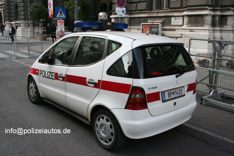 Funkstreifenwagen (MB A 160) der österreichischen Polizei in Wien.