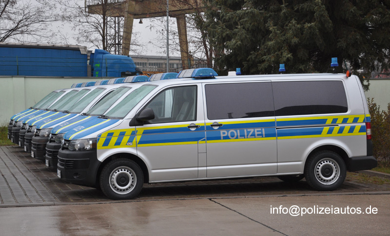 | Beschreibung: | Am 17.12.2014 hat Sachsen-Anhalts Minister für Inneres und Sport, Holger Stahlknecht, 32 neue Einsatzfahrzeuge an die drei Polizeidirektionen im Land übergeben. Die Transporter des Typs T5 vom Hersteller Volkswagen können als Streifenwagen, Mannschaftstransportwagen und als Verkehrsunfallaufnahmefahrzeug eingesetzt werden. Die Fahrzeuge verfügen über einen effizienten, leistungsstarken, sparsamen und umweltfreundlichen Dieselmotor. Über die werksseitige Ausstattung hinaus sind sie mit einem polizeitaktischen Sicherheitspaket ausgestattet, das aus einem Rundum-Durchstichschutz, einer zusätzlichen Schiebetür, die auch als Notausstieg dient, und spezieller Verglasung besteht. Zudem sind die Fahrzeuge so vorgerüstet, dass es möglich ist, sie perspektivisch als „Interaktive Funkstreifenwagen“ auszustatten. Konkret verfügen sie über ein erstmalig verbautes Schienensystem mit individuell verstellbaren Einzelsitzen und einen Bürocontainer/Tisch, in den diverse IT-Technik integriert werden kann. Auch eine spezielle für die Datenkommunikation benötigte Dachantenne sowie die nötigen Kabelbäume sind bereits vorhanden. Selbstverständlich sind alle Fahrzeuge auch mit den neuen Anhaltesignalen „Flasher und Yelp“ ausgestattet. Die Gesamtkosten für die neuen Einsatzfahrzeuge, von den 20 die Polizeidirektion Nord, sieben die Polizeidirektion Süd und fünf die Polizeidirektion Ost erhält, betragen rund zwei Millionen Euro. (Quelle), sowie Pressemitteilung Nr.: 066/2014 des Ministerium für Inneres und Sport. Fotos: Axel Vösterling |