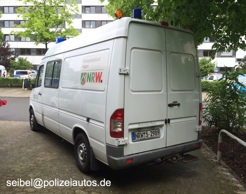Tatortkraftwagen des Polizeipräsidiums Hagen mit Beschriftungen auf den Türen und den Seiten.