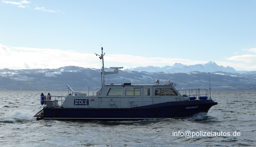 | Beschreibung: | Zollboot Hochwart. Bei der neuen „Hochwart“ handelt es sich um die ehemalige Kuhwerder, welche in Hamburg komplett überholt wurde und nun seit Dezember 2017 im Bodensee ihre weitere Verwendung findet. Das Zollboot "Hochwart" wurde 1997 als Zollboot "Mescherin" für die damalige Oberfinanzdirektion Cottbus in Dienst gestellt. Sie wurde im Juli 2005 durch die Oberfinanzdirektion Hamburg in "Kuhwerder" umgetauft und wurde bis 2016 im Hamburger Hafen sowie auf der Ober- und Unterelbe eingesetzt. 2016 wurde das Zollboot "Kuhwerder" in Hamburg außer Dienst gestellt und zum Verkauf angeboten. Es wurde dann aber aufgrund eines Motorschadens an einem anderen Zollboot umgebaut, mit einer neuen Maschine ausgestattet und 2017 unter dem Namen "Hochwart" am Bodensee wieder in Dienst gestellt. Technische Daten Bauwerft: Ernst Menzer, Hamburg-Bergedorf Schiffskörper: Aluminium Länge über alles: 15,30 m Breite: 4,67 m Tiefgang: 0,55 m Verdrängung: ca. 15 t Geschwindigkeit: 22 kn = 41 km/h Antriebsmotoren: 2x Yanmar 6LY3-STA je ca. 300 kW, 6 Zylinder Antrieb: 2x Hamilton Jetantrieb Typ 16/138 |