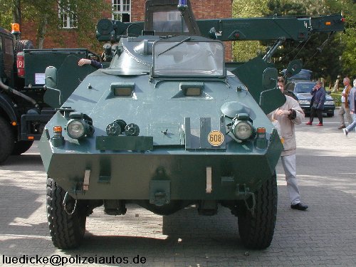 gepanzerter Sonderwagen (SW II), Lizenzbau des Schweizer Unternehmens MOWAG, ausgerüstet mit einem MG im Turm