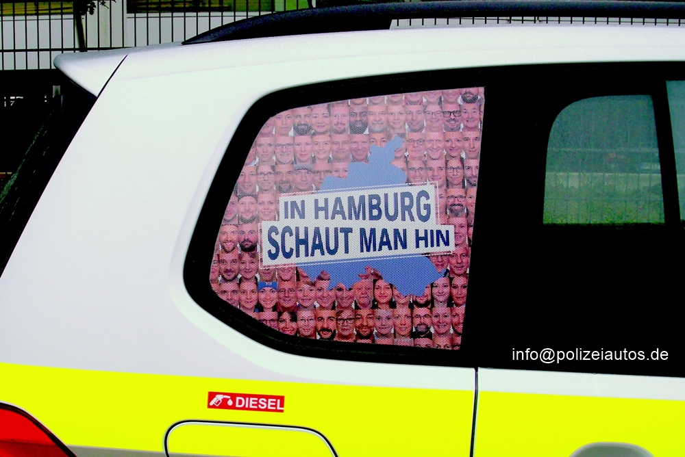 | Beschreibung: | Im Rahmen der Werbekampagne 2019 - IN HAMBURG SCHAUT MAN HIN - erhielten viele Fahrzeuge der Hamburger Polizei neue Werbeaufkleber, auch dieser VW Touran.