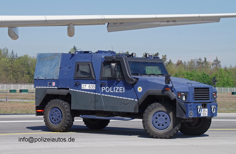 Geschützter Sonderwagen Mowag Eagle IV der Bundespolizei, beim Einsatz auf dem Flughafen Frankfurt/Main.