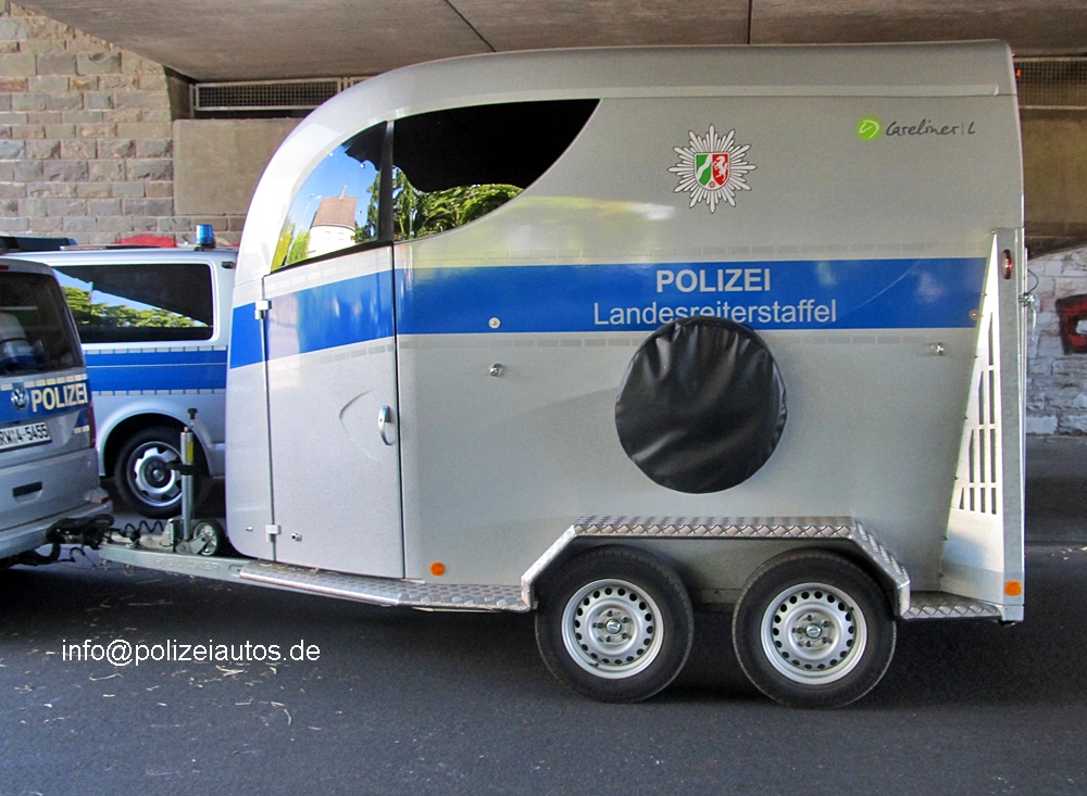 | Beschreibung: | Pferdetransportanhänger der Landesreiterstaffel der Polizei NRW. Hersteller ist die Fa. Bücker, bei dem Fahrzeug handelt es sich um die Variante Careliner L. Fotos: Manfred Wilewka |