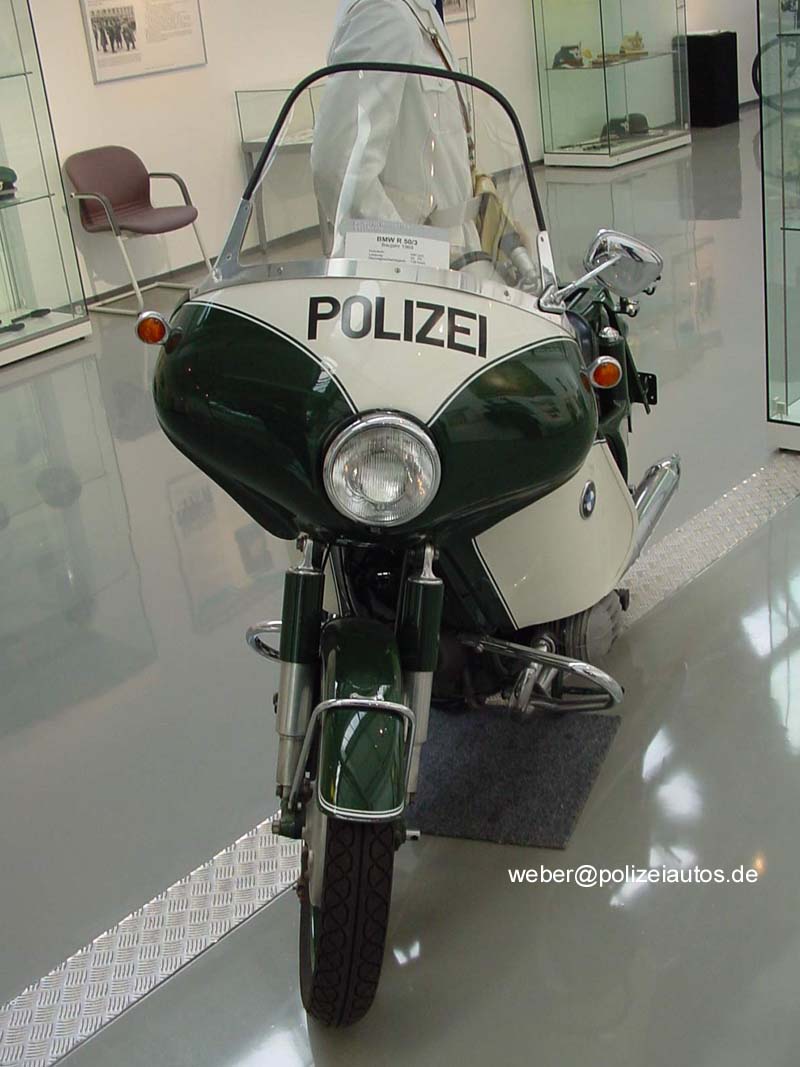 | Beschreibung: | Streifenkrad mit sogenannter Heinrich-Verkleidung, Bj.69 - 490 ccm - 26 PS - 130 km/h. Heute gehört es zur Polizeigeschichtlichen Sammlung Niedersachsen und kann dort besichtigt werden. |