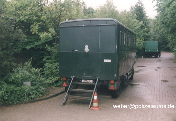 | Beschreibung: | Dieser Lkw-Anhänger wurde zur kompletten, mobilen Küche ausgebaut. Er befindet sich nicht mehr im Polizeibestand. Der Hersteller war leider nicht zu ermitteln. Aufnahmen aus 1999. |