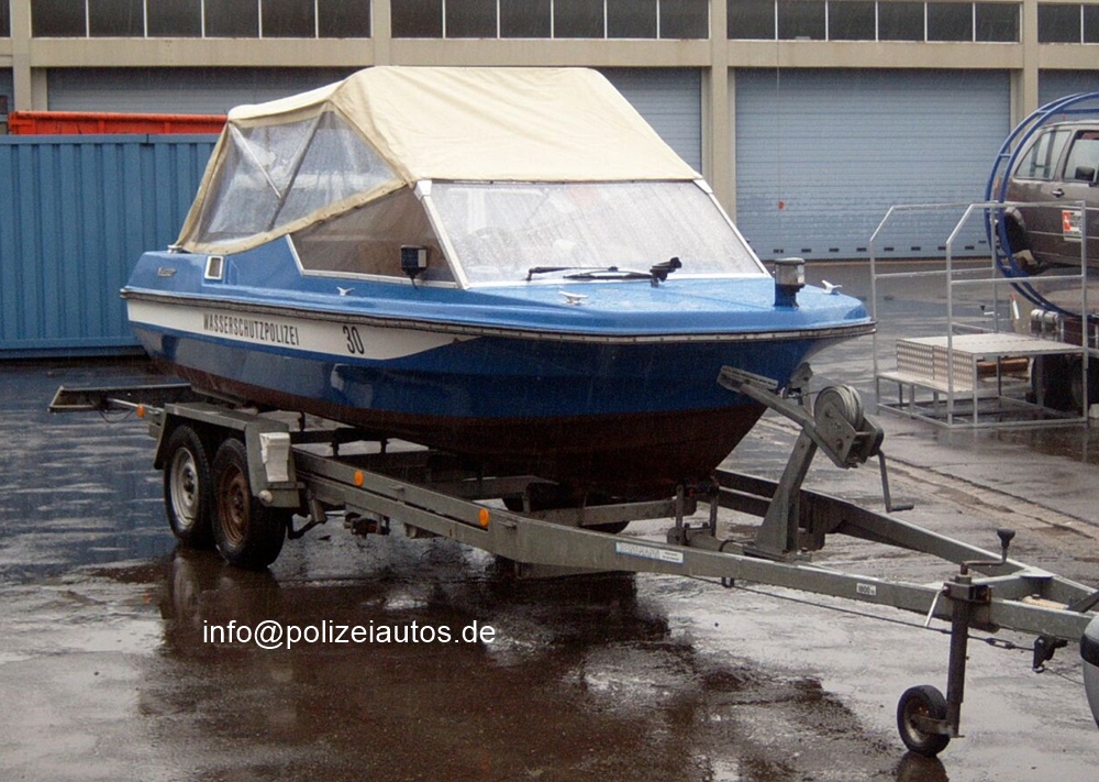 Boot 30 der Wasserschutzpolizei Niedersachsen auf einem Trailer.