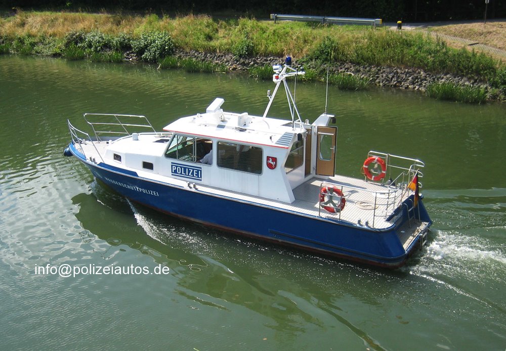| Beschreibung: | Boot 10 der WSP Niedersachsen mit Heimathafen Braunschweig. Technische Daten Heimathafen: Braunschweig Bootstyp: Streckenboot Baustoff: Aluminium Bauwerft: Deutsche Binnenwerften GmbH (Berlin-Köpenick) Bauart: Aluminium; Knick-/und Rundspant, Außenhaut geschweißt Baujahr: 1996 Länge: 12,80 m Breite: 3,50 m Höchster Festpunkt ü. CWL: 5,00 m Mast geklappt: 4,60 m Mast und Antennen geklappt: 3,50 m Tiefgang: 0,80 m Gewicht: 9,3 t Motoren: 1 x MAN D 0226 MTE 135 kW/2800 min-1 Getriebe: ZF-Wendegetriebe IRM 220 V-LD (1,885:1) Propeller: 21“, 5-flügelig, rechtsdrehend Höchstgeschwindigkeit: 25 km/h Dauergeschwindigkeit: 20 km/h Radargerät: SWISS-Radar JFS 364-D Ausgesondert und verkauft: 01/2012 |