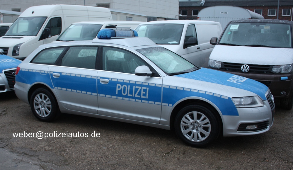 | Beschreibung: | Audi A 6 Avant der Polizei Niedersachsen mit verschiedenen Beklebungen, Pintsch-Bamag TOPas-LED und zusätzlichem ASiG auf dem Hof eines Autozulieferers. |