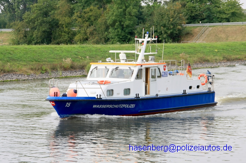 Streckenboot 15 der niedersächsischen Wasserschutzpolizei im Heimathafen Nienburg.