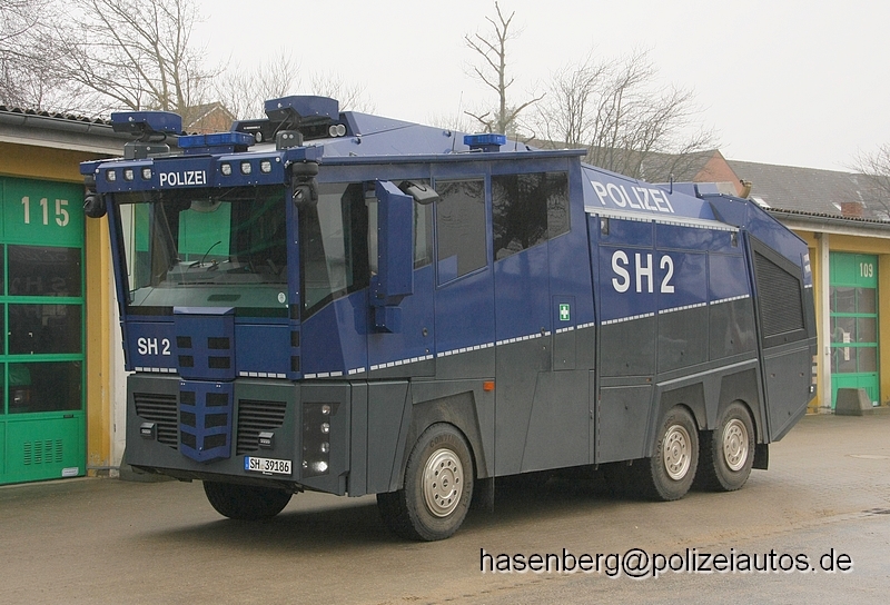 | Beschreibung: | Bundeseinheitlicher Wasserwerfer 10000 (WaWe 10) der Bereitschaftspolizei Schleswig-Holstein. |