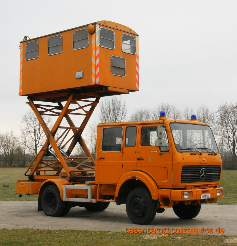 Bei diesem Fahrzeug handelt es sich um einen Prototyp der nach den schweren Demonstrationen in Grohnde und Gorleben von der niedersächsischen Landespolizei beschafft wurde. Die Beobachtungskabine kann stufenlos über eine Hydraulik auf eine Höhe von 4,2m angehoben werden. Dieses Fahrzeug sollte bei Kundgebungen und Großveranstaltungen einen Überblick über große Menschenansammlungen ermöglichen. Da sich das Konzept nicht durchsetzten konnte blieb es bei diesem Einzelstück, welches bei der Fa. Schörling in Hannover gebaut wurde. Mittlerweile wird das Fahrzeug bei der Hubschrauberstaffel als mobiler Tower genutzt. |