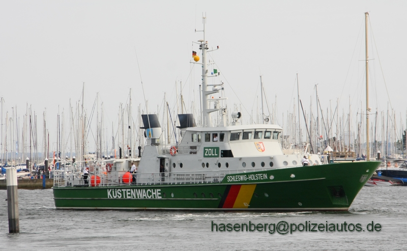 | Beschreibung: | Zollkreuzer "Schleswig-Holstein", im Hafen der BPOL See, in Neustadt in Holstein. Das Boot wurde 1988 in Dienst gestellt. Technische Daten: Hersteller: Schiffs- und Bootswerft Fr. Schweers (Bardenfleth/ Weser) Länge ü.A.: 38,40 m Breite: 7,80 m Tiefgang: 2,10 m Masse: 258 BRZ Geschwindigkeit: 29 Kn (ca. 53 km/h) Motorisierung: 3x Deutz MWM mit jeweils 1320 kW/ 1795 PS Antrieb: Verstellpropeller (Mitte) und Festpropeller (Außen), Bugstrahlruder |