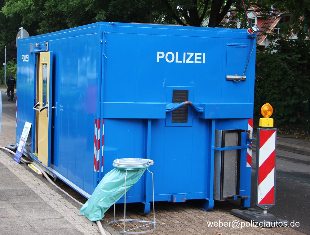 | Beschreibung: | Dieser Abrollbehälter der Polizei Niedersachsen wird bei Kontrollen oder Veranstaltungen als Mobile Wache genutzt. Er wurde auf allen Seitenwänden mit einem POLIZEI-Schriftzug versehen. |