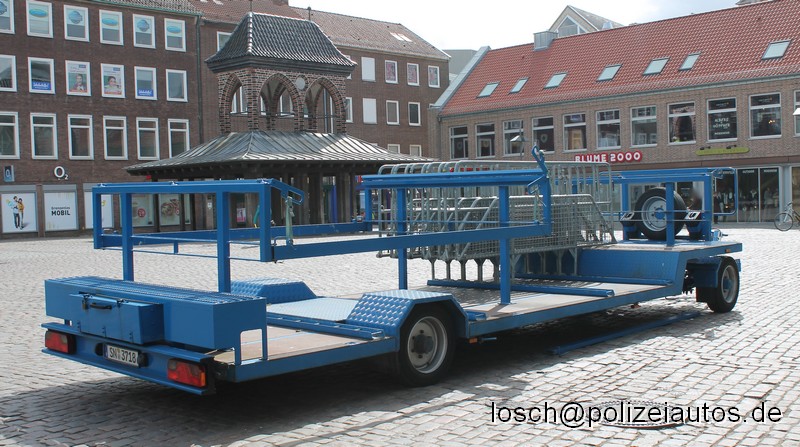 | Beschreibung: | Anhänger der Polizei Mecklenburg-Vorpommern zum Transport von "Hamburger" Gittern. Der ehemals grün lackierte Anhänger wurde inzwischen an das aktuelle Farbschema der Polizei Mecklenburg-Vorpommern angepasst. Im Einsatz wird der Anhänger von einem ebenfalls umlackierten Mercedes-Benz 1017 gezogen. |